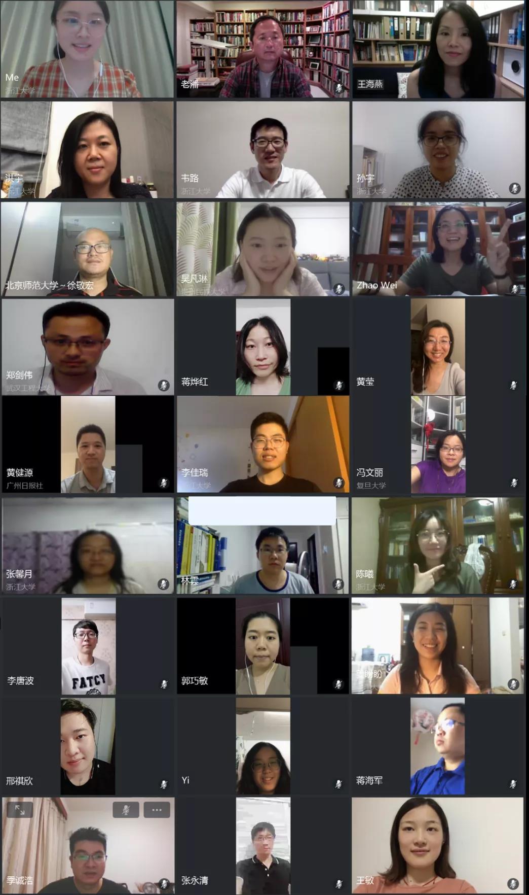 2020年7月6日至10日,第十二届浙江大学“国际前沿传播理论与研究方法”高级研修班于线上成功举办。本届研修班由浙江大学、威斯康星大学、宾夕法尼亚大学、中国新闻史学会全球传播与公共外交委员会和中国新闻史学会网络传播史委员会联合主办。多位海内外学术大咖和一百五十余名青年学者汇聚云端,围绕 “数字媒体时代的新闻生产、信息流动与传播公信力”的主题,通过海内外名师授课、学员分组讨论、学员汇报展示和圆桌讨论等多种形式展开线上交流。