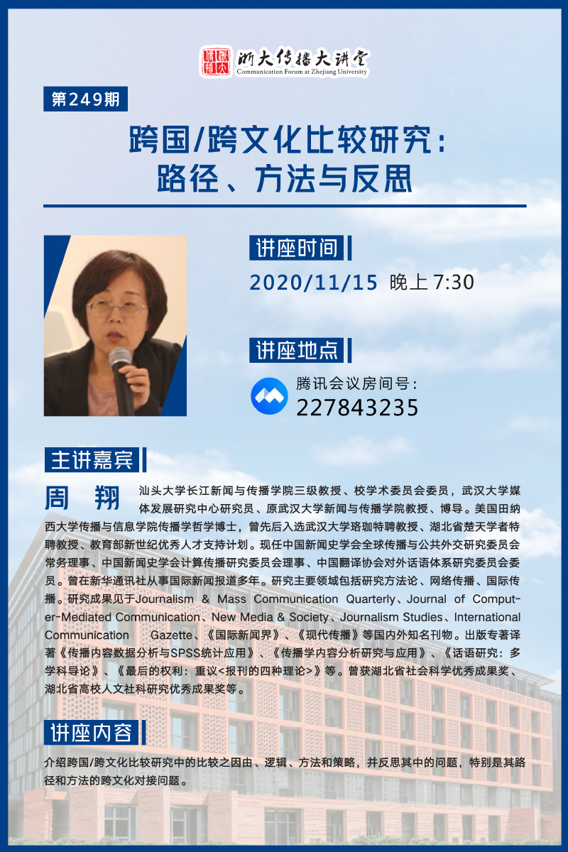 浙大传播大讲堂第249期:跨国/跨文化比较研究:路径、方法与反思
