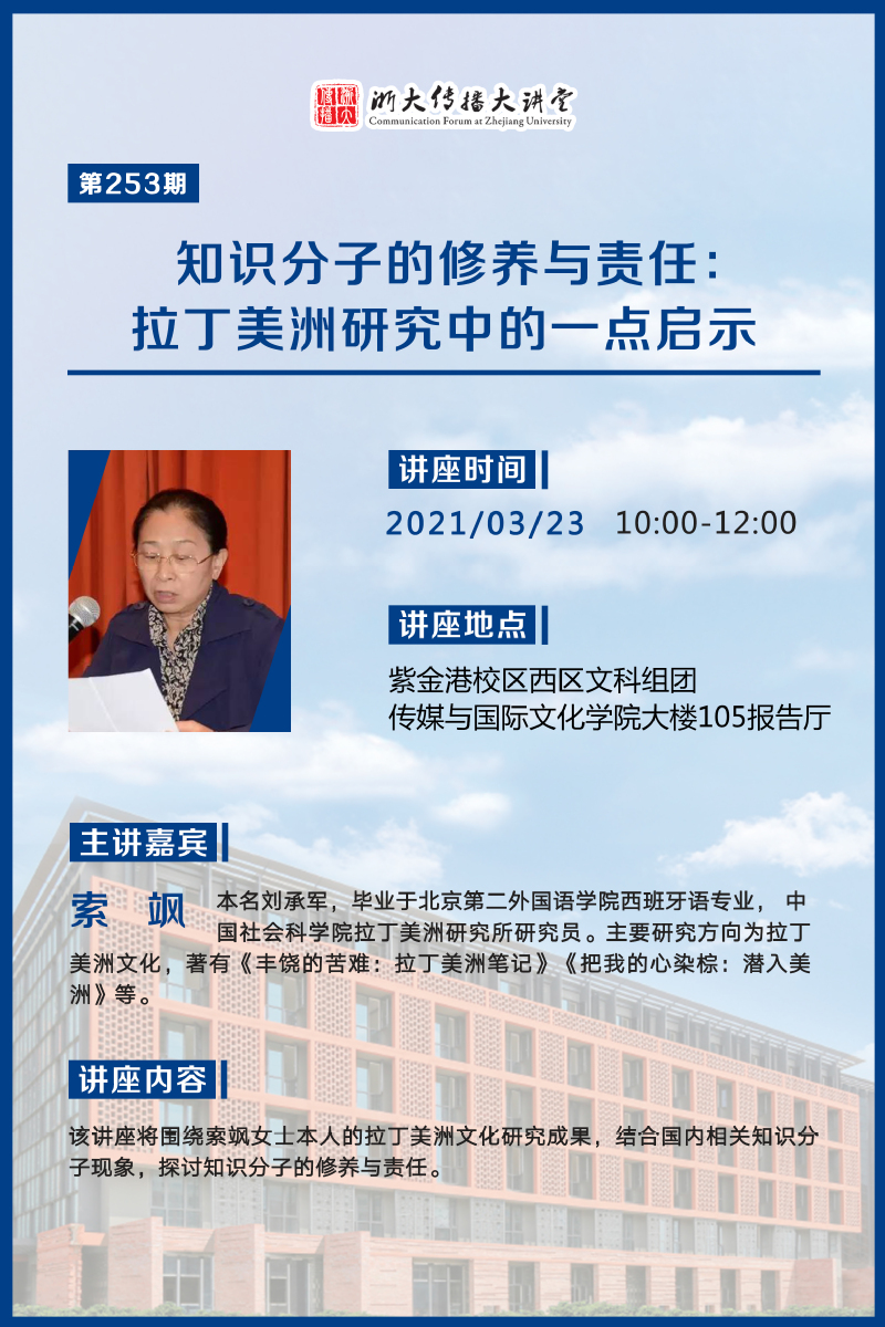 浙大传播大讲堂第253期:知识分子的修养与责任:拉丁美洲研究中的一点启示