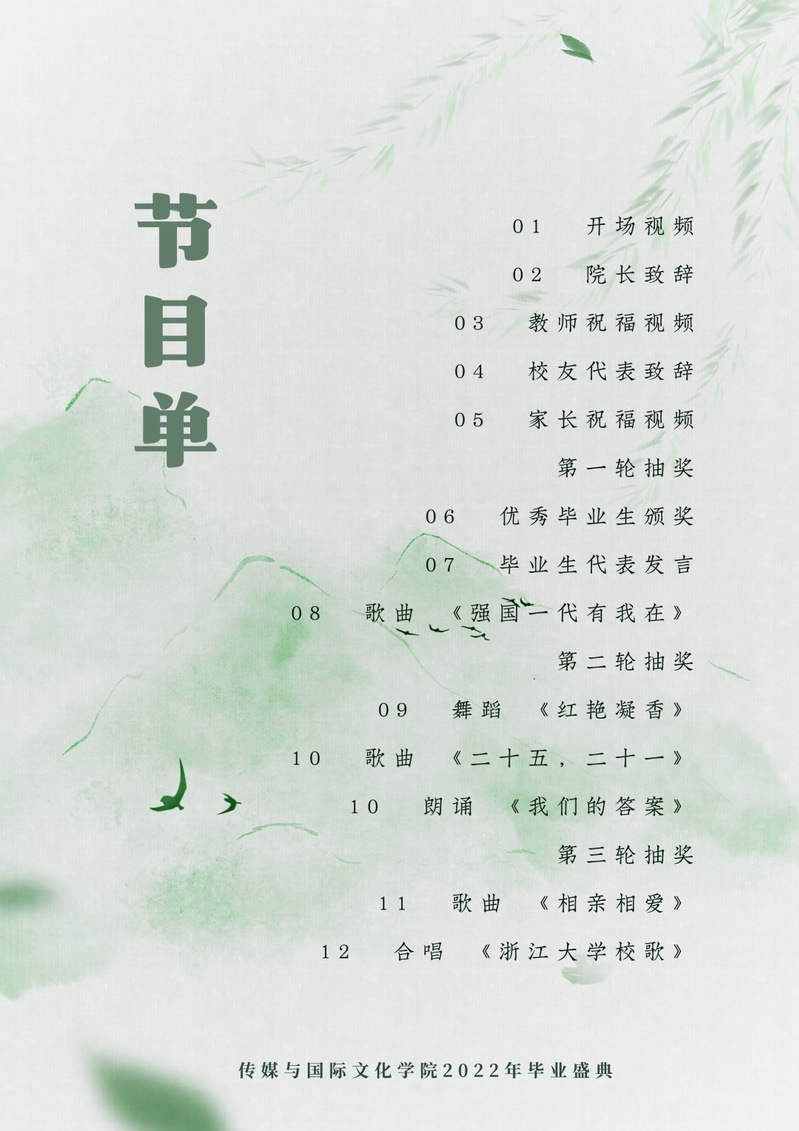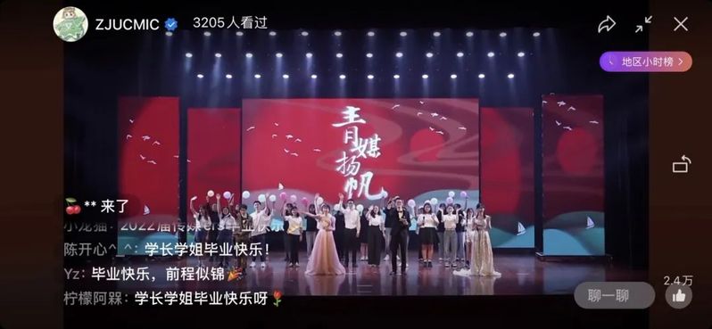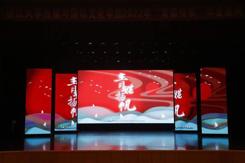 2022年6月13日,浙江大学传媒与国际文化学院2022年“青媒扬帆”毕业盛典在浙江大学紫金港校区小剧场完成线下录制。