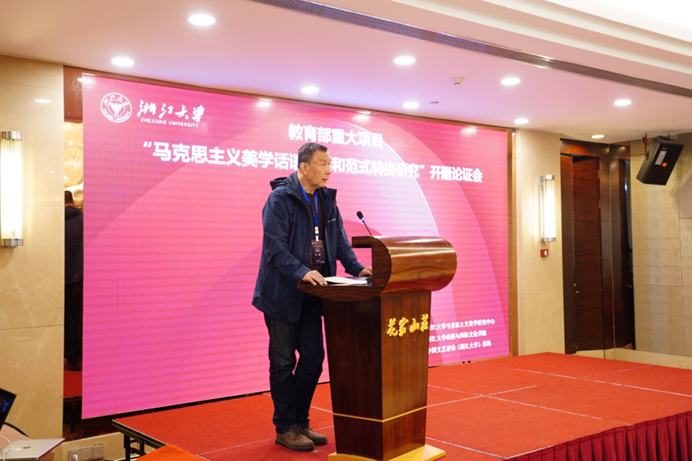 2023年3月26日上午,由浙江大学王杰教授任首席专家的教育部哲学社会科学重大攻关项目“马克思主义美学话语体系的历史演变和范式转换研究”开题论证会在杭州顺利召开。包括中国社会科学院、中国文艺评论家协会、北京师范大学、上海交通大学、复旦大学、四川大学、浙江大学、东南大学、中南民族大学、深圳大学、暨南大学、兰州大学等高校与科研单位的专家学者共30余人参加了此次会议。