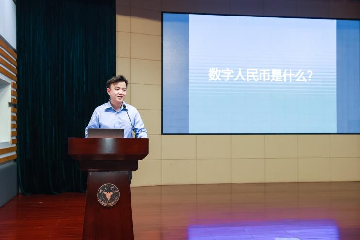 上午场的最后一个环节,是中国人民银行杭州中心支行货币金银处副主任科员张若泰先生对专项赛道命题进行的宣讲。对数字人民币进行了简要的介绍,同时为我们展示了数字人民币的应用场景是怎样的,目前,正从衣食住行等各个层面逐步扩大数字人民币的使用面,浙江纳入试点后已经逐步搭建了许多数字人民币的使用场景,数字人民币在许多层面都具有功能优势与特色。