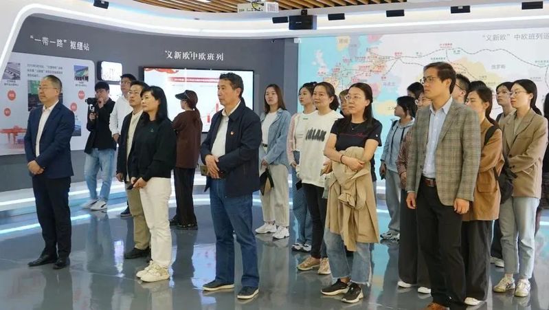 本次主题党日活动第一站来到了“义新欧”班列始发港,这是从义乌出发,经新疆阿拉山口口岸出境,途经哈萨克斯坦、俄罗斯等国,抵达西班牙首都马德里的货运班列。该班列线路全长13052公里,运行时间21天,极大加强了中国东部沿海与中亚和欧洲地区的联系。