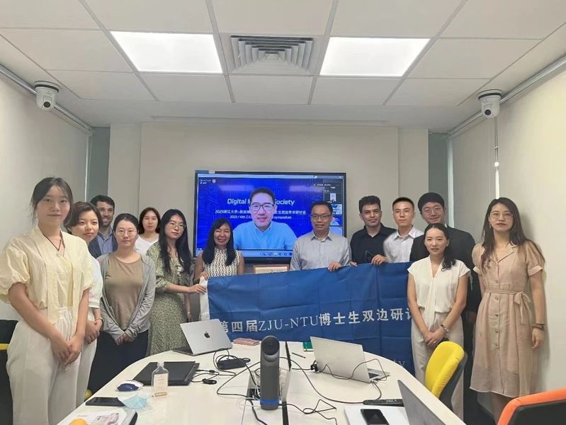 2023年9月13日至14日,浙江大学传媒与国际文化学院和新加坡南洋理工大学黄金辉传播与信息学院联合举办以“Digital Media & Society”为主题的第四届博士生双边研讨会。在百人计划研究员陈宏亮老师的带领下,浙江大学传媒与国际文化学院的10名博士研究生赴新加坡南洋理工大学黄金辉传播与信息学院参会。本次研讨会在线下线上同时进行,两校师生围绕数字媒体的热门议题,展开了热烈讨论。