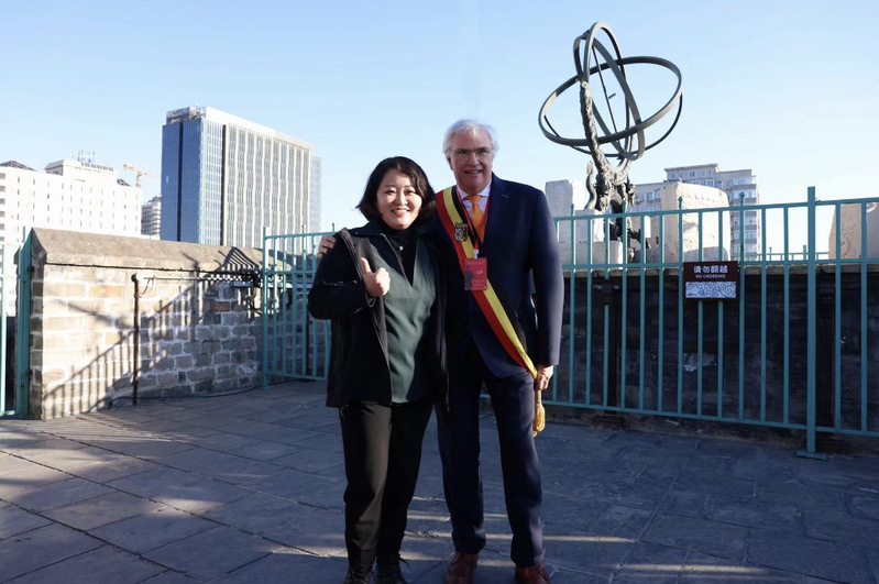 图为孙潇娜(左)与比利时西弗兰德省省长(右)的合影