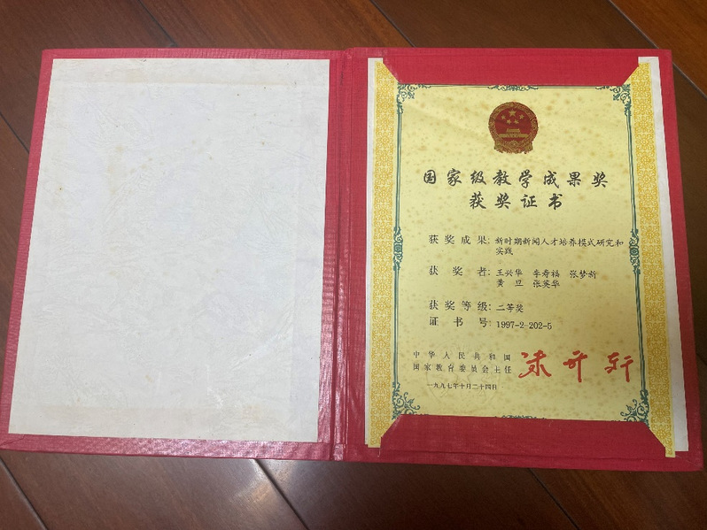 图表 4 张梦新获得国家级教学成果奖获奖证书