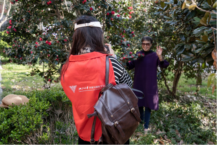 “用相机守‘不老’容颜”是传媒学院的品牌志愿服务项目。自2021年以来,一批批传媒学子走进蒋村街道府苑新村、遐龄荟·诚园社区、遐龄荟·河滨社区、万科西庐、西溪蝶园等蒋村街道下辖的五家社区,为老人们拍摄照片、记录笑颜,打造出一个有组织、有规模、有成效的专业性特色品牌。目前,该志愿团队由传媒学院3个本科生年级组成,传播学专业团支部成员参与率达100%,累计服务老人人数200+,社区满意度达100%。这不仅是一次志愿活动,更是一场温情满满的陪伴。从短期项目转变为长期品牌,团队成员创新志愿形式,采取“伴游”的拍摄形式,拓展服务点位,更新服务模式,形成了规范的联系机制和活动制度,结合社区养老驿站、养老小院、智慧社区的推进建设,强化日常陪伴环节,增进过程化服务,得到了浙江日报、潮新闻、浙江大学团委等媒体平台的宣传报道。