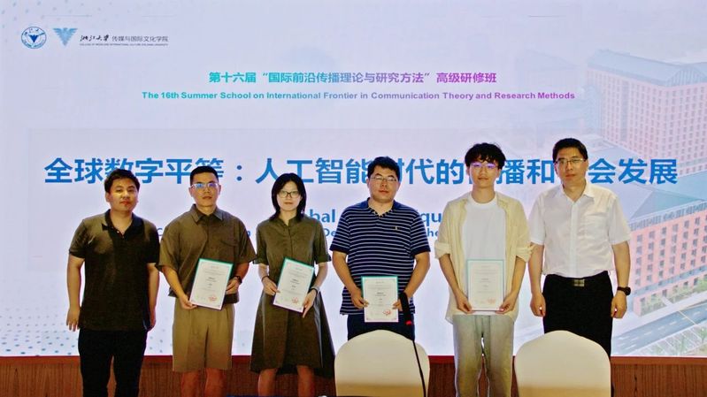 7月5日下午,第十六届浙江大学“国际前沿传播理论与研究方法”高级研修班结营式在衢州市衢江区杨炯纪念馆举行。本届研修班的主题为“全球数字平等:人工智能时代的传播和社会发展”,由浙江大学传媒与国际文化学院、清华大学新闻与传播学院、浙江省衢州市衢江区人民政府联合举办。