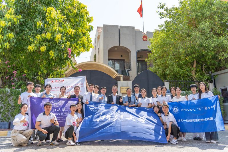 7月26日,浙江大学第五期“致远”计划传媒学院赴阿联酋海外社会实践团等访问中国驻阿联酋大使馆,张益明大使会见了实践团一行,并与实践团亲切座谈。