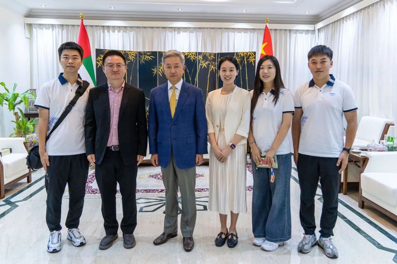 张益明大使对实践团的到来表示热烈欢迎。他指出,今年是中阿两国建交40周年,充满机遇、活力和朝气的阿联酋已成为我国在中东海湾地区合作最坚实、关系最亲密的伙伴之一。他强调,中国加速推进高质量发展与高水平对外开放的历史机遇为两国青年学生搭建了高效的交流平台,浙江大学在国际化人才培养领域付出了巨大努力、获得了很大成就,希望未来有更多青年人才参与到中阿交流活动中来。