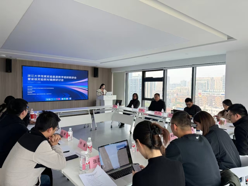 11月22日,浙江大学传媒与国际文化学院智能融媒体与数字内容创作实验教研室组织召开以“元宇宙与AIGC新纪元”为主题的教学研讨会。本次研讨会在黄龙未来中心举行,由教研室教师许今茜主持,包括教研室负责人卢小雁教授及张子柯教授、张婵教授、吴丰军老师、沈斌老师等近十位教研室教师代表参会,会议还邀请了来自产、教、研、用等领域的多家单位及企业代表二十余人,围绕“元宇宙与AIGC新纪元”这一主题共同参与传媒教育教学研讨与前沿技术交流。