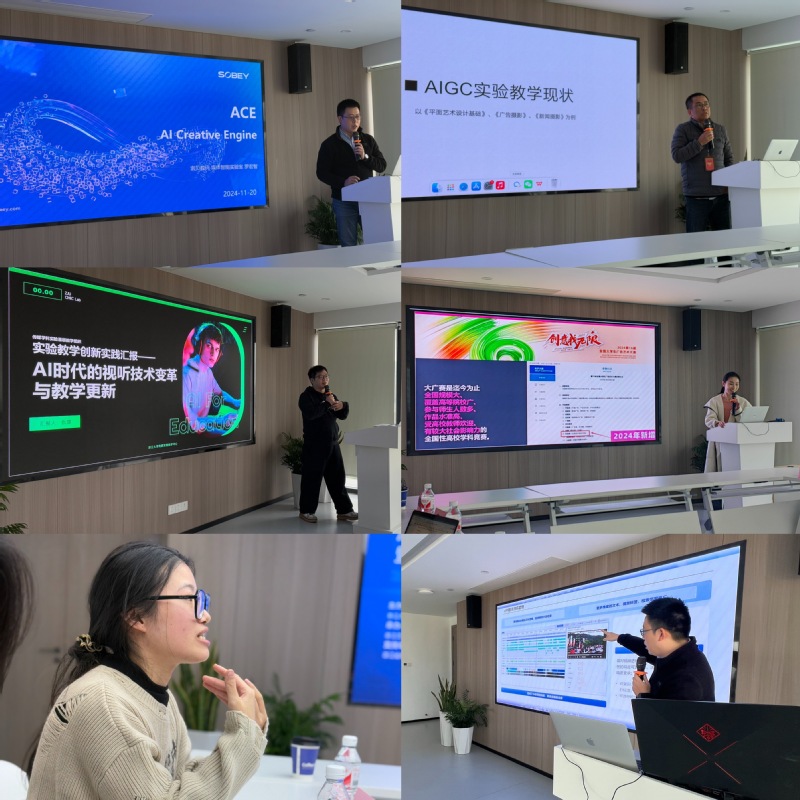 主题报告后,来自智能融媒体与数字内容创作实验教研室的多位教师就目前自己承担的教育教学及科研中对于AI技术的应用与规划进行了现状介绍与经验交流。经过深入探讨,大家一致表示,如何将AIGC技术及元宇宙等其他前沿技术在传媒类本科教学中引入与深度应用,是值得每一位教学与研究内容涉及智能融媒体与数字内容创作的一线教师需要重点关注和思考的内容。