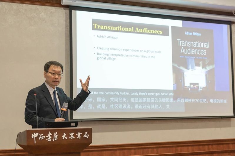 随后,教授指出,尽管数字技术在不断发展,但我们所处的叙事却在人类的核心理念和愿景方面停滞不前。人类只能生活在自己创造的叙事之中。在全球电视崛起的时代,我们参与叙事生产和消费的方式正在走向一个新的场景。借用安德森对民族主义崛起的洞察,可以预测的是全球主义在长远看来也将崛起。教授认为,新平台及其内容将创建一个全球解释社区(global interpretative community),共享一个新的宏大叙事,提供有效解决相互竞争与冲突的叙事框架。