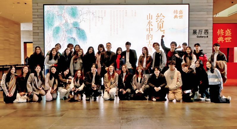访问期间,代表团实地考察了传媒实验教学中心与融媒体演播中心,深入了解了浙江大学在传媒教育领域的前沿探索和创新实践。在浙江大学艺术与考古博物馆,我校留学生担任文化使者,以专业视角为来宾讲解了中国古代山水画的艺术特色与文化内涵。双方师生围绕传统艺术与现代传媒的融合发展展开了深入探讨,现场气氛热烈。