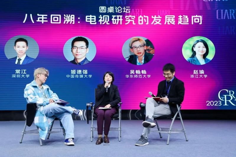 After the keynote speeches, Professor Chang Jiang from Shenzhen University, Professor Ji Deqiang from Communication University of China, Associate Professor Wu Changchang from East China Normal University, and Professor Zhao Yu from Zhejiang University held a roundtable discussion on Eight Years of Retrospective: The Development Trend of Television Research. On behalf of the organizers, several teachers shared the original intention of jointly establishing the China Television Research Annual Conference and the paradigm transformation of Chinese television research in the past eight years. Professor Chang Jiang introduced the changes that are taking place in the technological environment of television production, transmission and reception, and proposed the issues worthy of attention in the process of transforming the paradigm of television research to digital audiovisual research. Professor Ji Deqiang pointed out that the development history of television is linear, but television research can be nonlinear, and in addition to industrialization, television research also involves the issue of media system and collective memory. Professor Wu Changchang discussed the demand for real-time experience on video platforms and the impact of new online broadcast platforms on traditional TV broadcasting models, and also called for the reform of radio and television professional education to cultivate talents who can adapt to the development of the industry. Professor Zhao Yu pointed out that the future of television research focuses on solving the problem of the fit between the actor model and the scholar model.