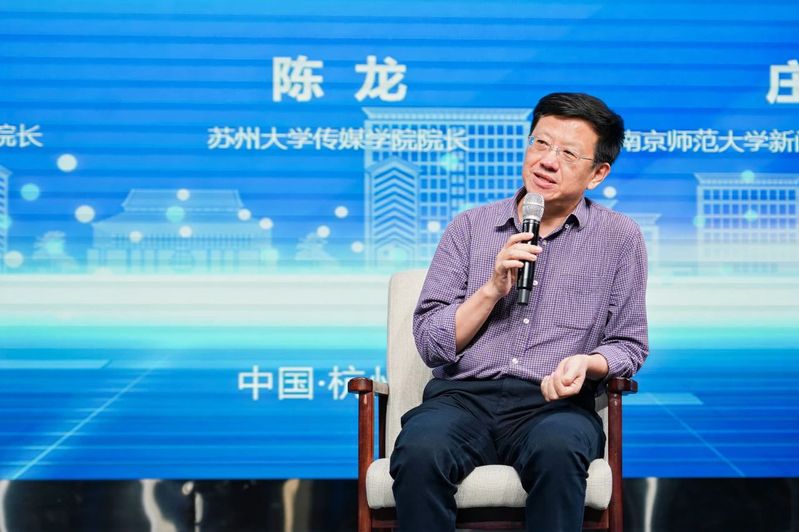 The second session of Academic Frontiers of Global Digital Communication was hosted by Zhao Yu, Vice Dean of School of Media and International Culture, Zhejiang University. Lu Xiaohua, Dean of School of New Media and Communication, Tianjin University; Chen Long, Dean of School of Communication, Soochow University; Zhuang Xi, Executive Dean of School of Journalism and Communication, Nanjing Normal University; and Li Xin, Dean of School of Journalism and Communication, Zhejiang University of Media and Communication participated in the discussion.