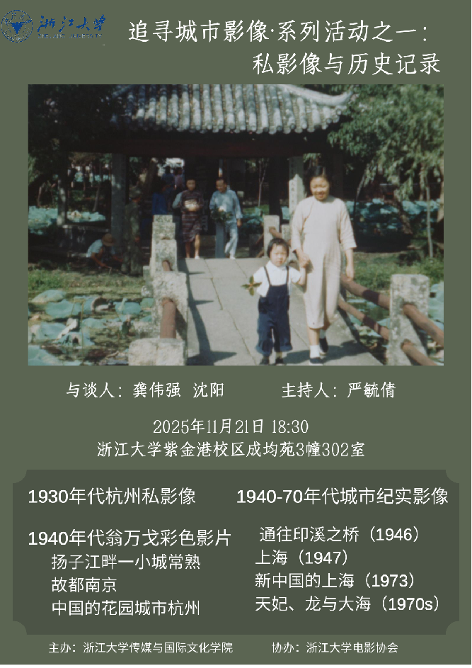 On 21st and 25th November, we shall host two screenings and discussions on urban imagery at Zhejiang University's School of Media and International Culture. From historical documentaries spanning the 1930s to 1970s, to contemporary young directors' poetic explorations of Hangzhou's urban history through their lenses, we shall examine the relationship between urban spaces, their inhabitants, and those who document them.